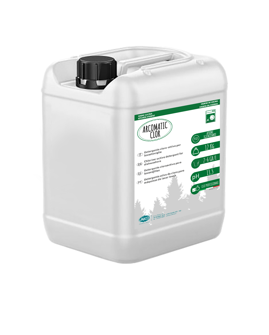 ARCOMATIC CLOR è un detergente sanificante per lavastoviglie a base cloro con un’alta concentrazione di sostanze attive, ideale per un’azione sgrassante ed igienizzante di tutte le stoviglie. E’ indicato per lavastoviglie di tipo industriale e domestico e per macchine lava-stampi. Toglie macchie di tè, caffè o rossetto da tazze e bicchieri ed è efficace con qualsiasi grado di durezza dell’acqua. Non schiumogeno.