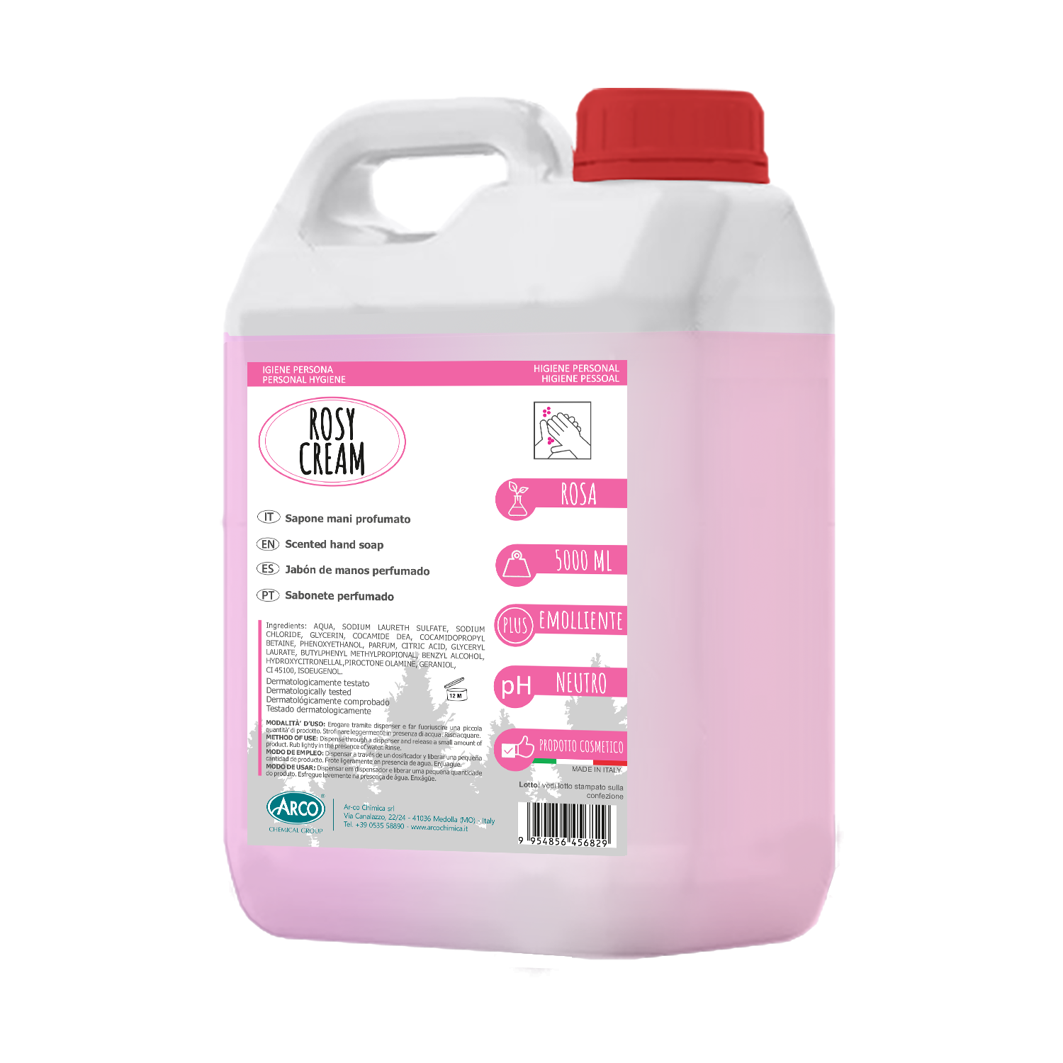 ROSY CREAM è un prodotto neutro formulato con materie prime pregiate. Contiene speciali agenti emollienti protettivi che consentono di mantenere l’epidermide delle mani morbida e profumata. Sviluppa una soffice schiuma che permette di emulsionare lo sporco dalle mani senza esasperare l’effetto tensio-penetrante nei pori sottocutanei. Gradevole profumato alla rosa.