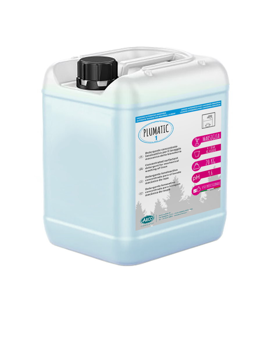 Detergente liquido ad elevata azione tensioattivante dello sporco, in grado di rimuovere ogni traccia di sporco localizzato e diffuso nel tessuto. L’alto potere sequestrante di PLUMATIC 1 lo rende efficace anche in acque molto dure.