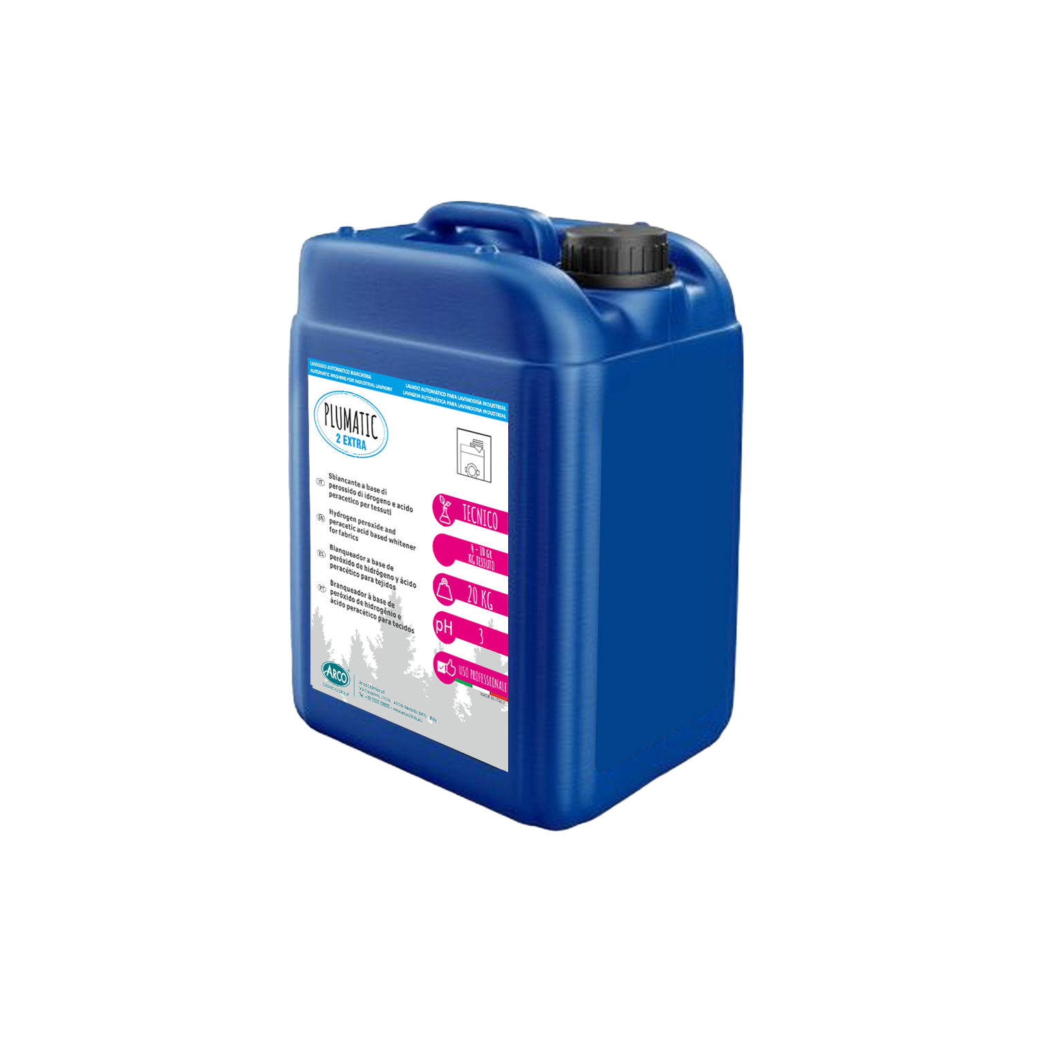 Sbiancante liquido a base di perossido di idrogeno tamponato e acido peracetico ad alta azione sbiancante e sanitizzante. Prodotto idoneo per tutti i tipi di tessuti lavabili e candeggiabili.