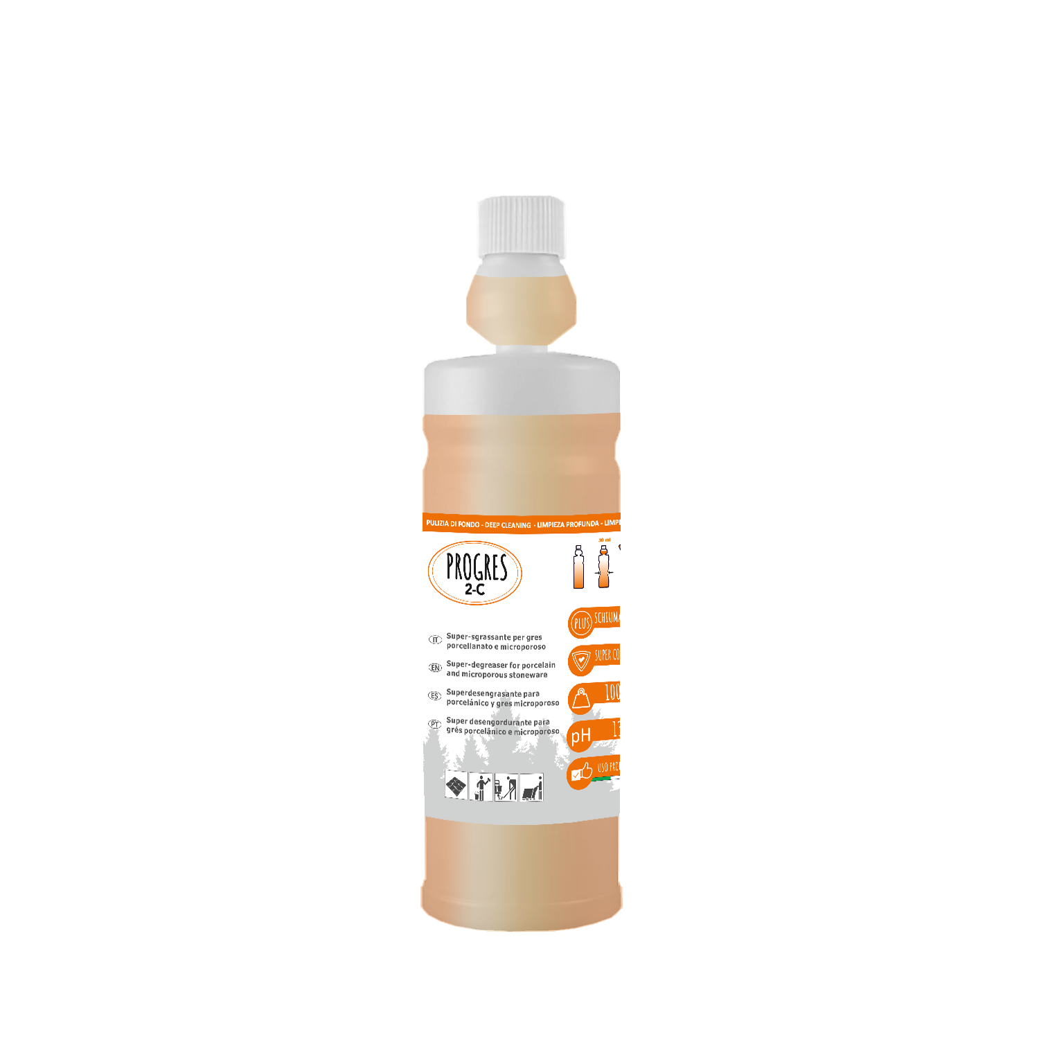 Progres è un detergente superconcentrato a base ammoniacale che contiene saponi naturali, idoneo per la manutenzione ordinaria di pavimenti, superfici piastrellate, vetri, infissi, superfici lavabili. Per la sua bassa formazione di schiuma è particolarmente indicato all’impiego con lavasciuga e monospazzola.