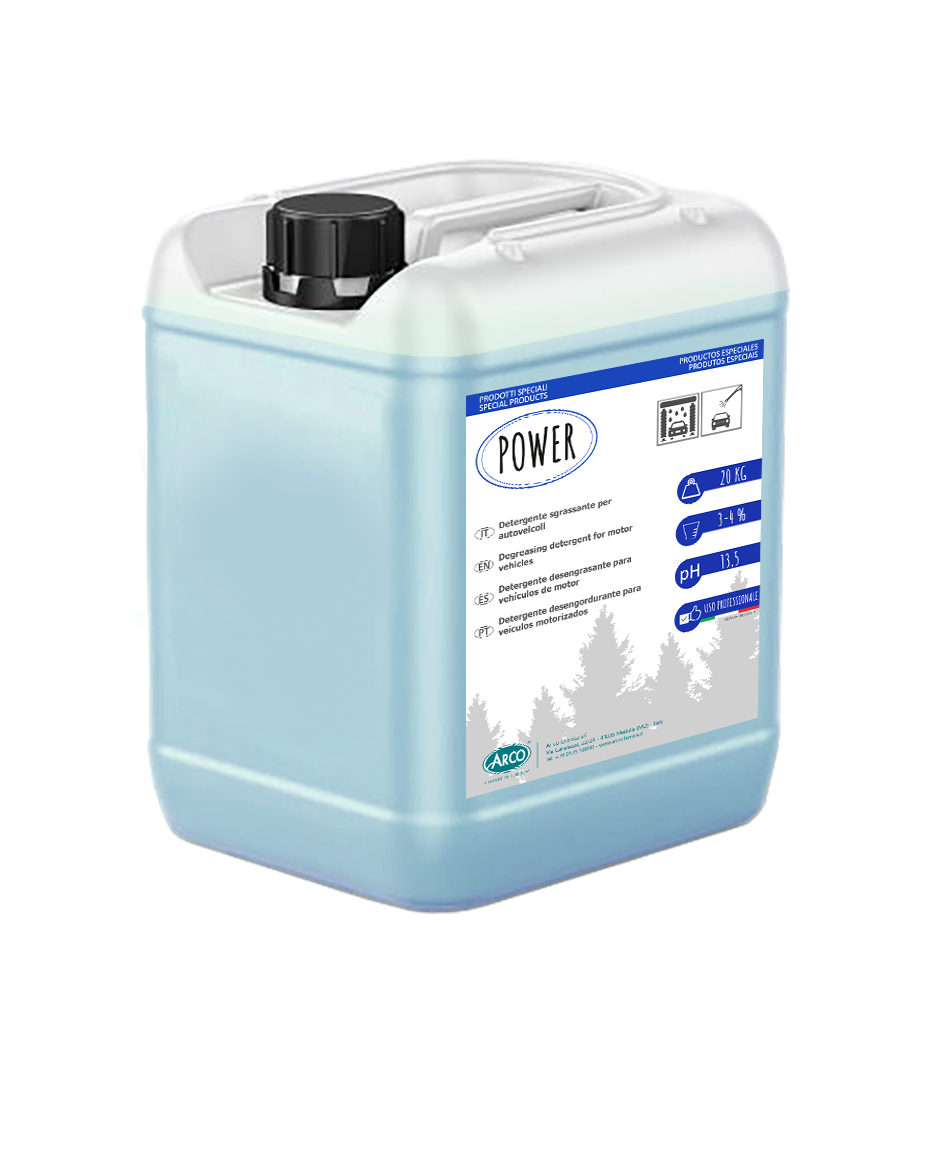 POWER è un detergente ad alta concentrazione indicato per la pulizia di camion, autocarri, autocisterne, autovetture e teloni senza l’ausilio di spazzoloni. E’ ottimo per il lavaggio di autoveicoli prima dell’ingresso nel tunnel di autolavaggio. Data la sua versatilità si dimostra molto efficace su sporco tenace in genere. Elimina lo sporco o unto in genere da parti e superfici metalliche, non in alluminio.