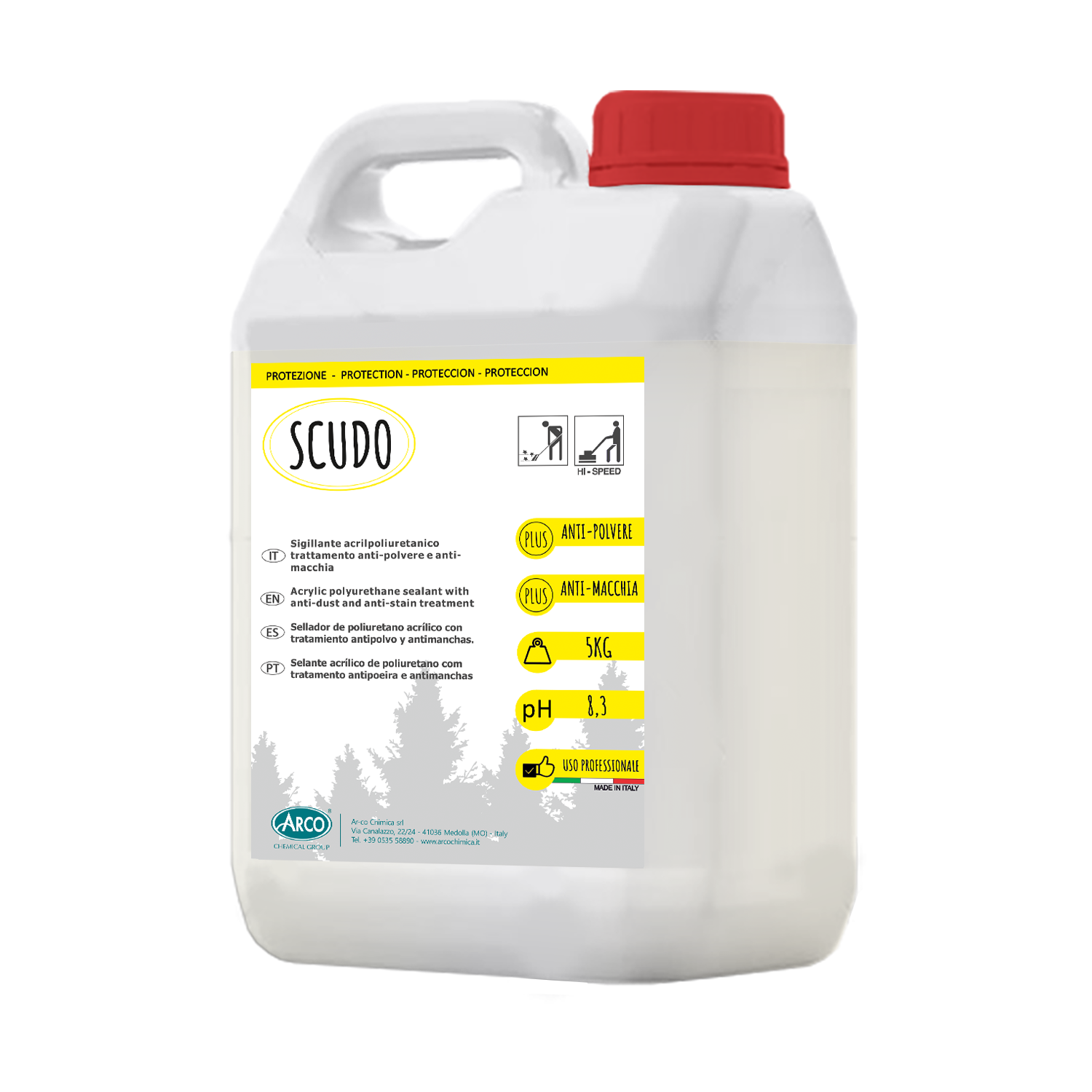 SCUDO è un prodotto ideale per la protezione di pavimenti in cement, che hanno caratteristiche di porosità elevate e sono quindi attaccabili da macchie di origine oleosa e sporco. SCUDO è un prodotto a base d’acqua con presenza di resine acriliche e poliuretaniche che impediscono allo sporco in genere, soprattutto quello oleoso, di penetrare nei pori. E’ resistente ai lavaggi con detergenti e al traffico anche di tipo meccanico.