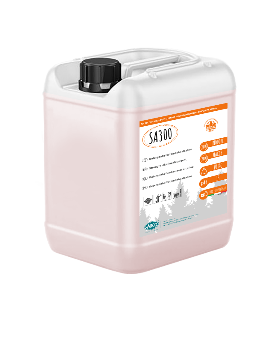 SA 300 è un detergente liquido fortemente alcalino indicato per la pulizia di fondo di pavimenti e superfici, che richieda la rimozione di grassi di qualsiasi origine. Può essere utilizzato sia per il lavaggio manuale che meccanico. Ideale anche per l’industria alimentare