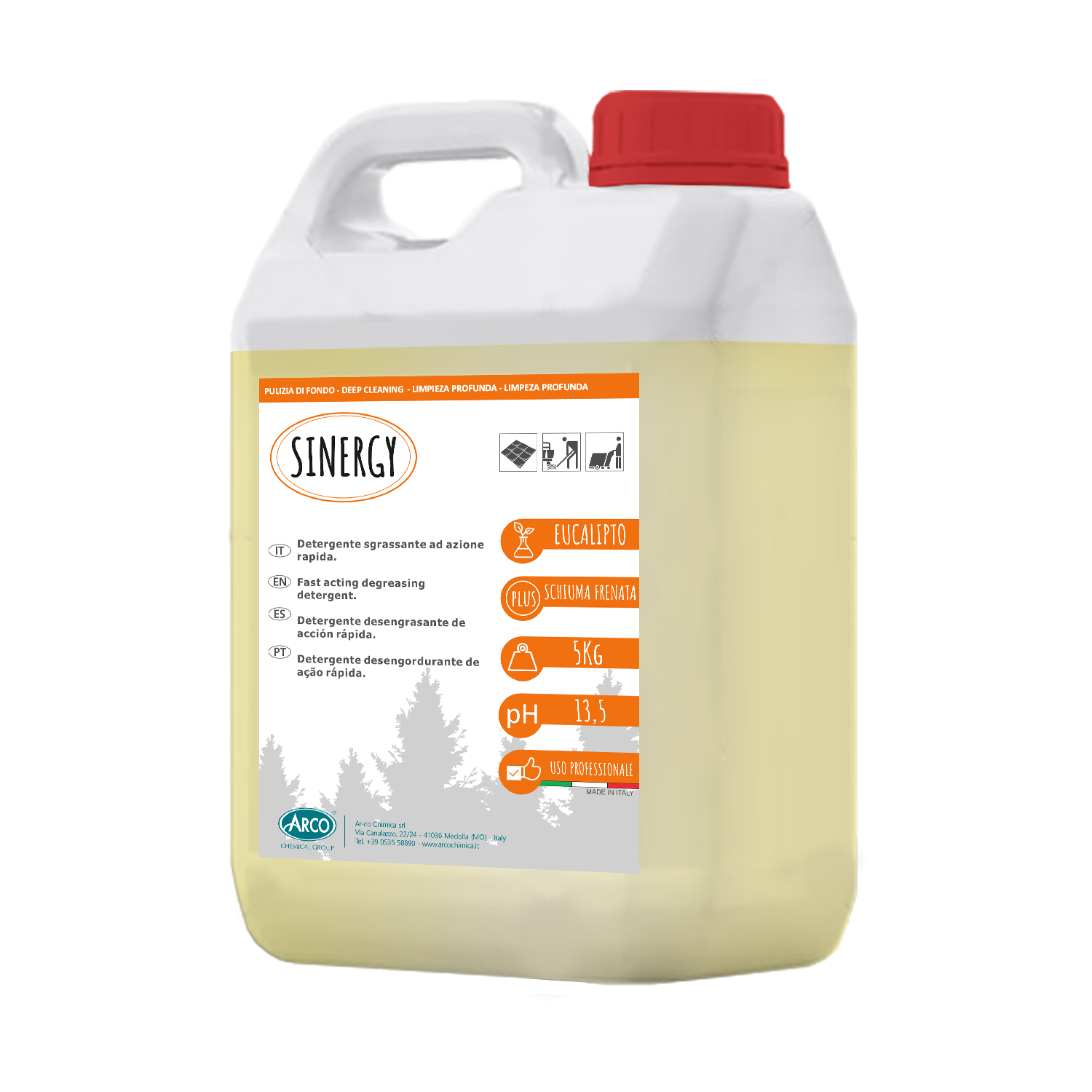 SINERGY è un detergente che combina un alto potere distaccante e un basso potere schiumogeno. E’ specifico per ogni tipo di sporco di origine grassa e pigmentosa, e è utilizzabile per la pulizia di officine, magazzini, industrie, mense. SINERGY ha un’alta presenza di sostanze attive ed è indicato per rimuovere strati di cere metallizzate.